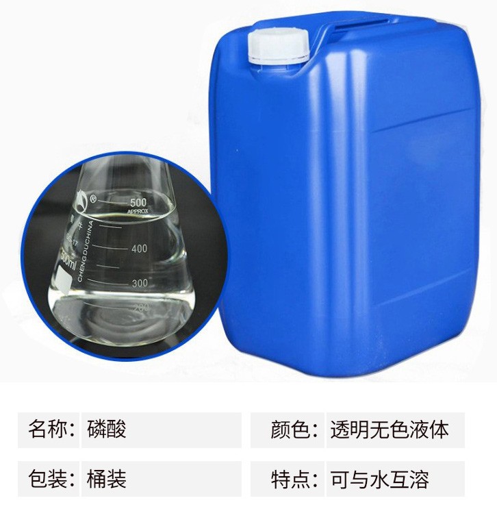 熔點42.35℃,比重1.70,高沸點酸,可與水以任意比互溶,沸點213℃時(失去1/2水),則生成焦磷酸。加熱至300℃時變成偏磷酸。相對密Chemicalbook度181.834。易溶于水,溶于乙醇。磷酸是一種常見的無機酸,是中強酸。其酸性較硫酸、鹽酸和硝酸等強酸弱,但較醋酸、硼酸、碳酸等弱酸強。磷酸與碳酸鈉反應時在不同的pH下,可生成不同的酸式鹽。能刺激皮膚引起發(fā)炎,破壞肌體組織。濃磷酸在瓷器中加熱時有侵蝕作用。有吸濕性,密封保存。磷酸主要應用領域如下:金屬表面鋼管磷化處理,配制電解拋光液和化學拋光液;鋁制品的拋光;制造各種磷酸鹽、飼料級磷酸氫鈣、酸式磷酸錳、焦磷酸鉀;醫(yī)藥工業(yè)用于制造甘油磷酸鈉、磷酸鐵,制造青霉素時調(diào)節(jié)酸堿度;用于制造磷酸鋅作為牙科補牙時粘合劑;塑料用于酚醛樹脂縮合的催化劑Chemicalbook;染料及中間體生產(chǎn)用的干燥劑;印刷用于配制揩去膠印彩印版上污點的清洗劑;火柴用于浸漬火柴梗,能使燃燒過的火柴梗不成灰而成炭狀,使用時較為安全;冶金用于生產(chǎn)耐火泥,提高煉鋼爐壽命;橡膠用于漿料的凝固劑及生產(chǎn)無機粘結(jié)劑的原料;涂料用于金屬防銹漆;食品工業(yè)用作酸性調(diào)味劑。